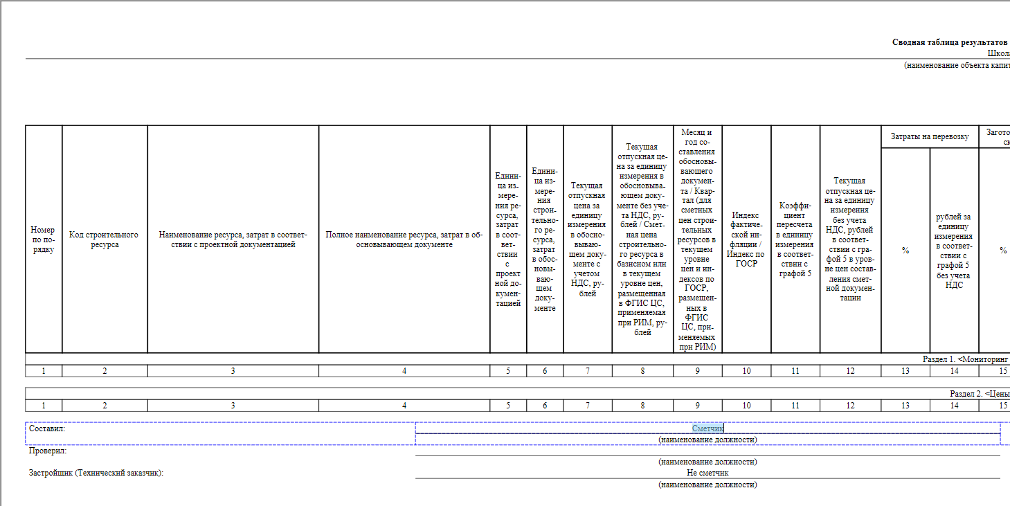 Такая структура соответствует рекомендуемому образцу, приведённому в Приложении № 1 к Методике определения сметной стоимости строительства.