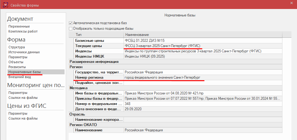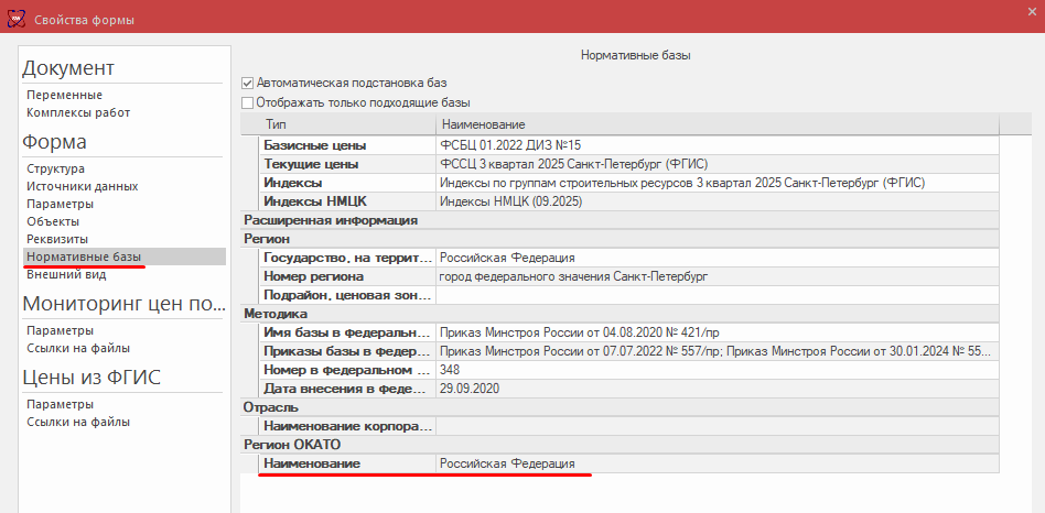 Наименование субъекта Российской Федерации, на территории которого осуществляется строительство, заполняется автоматически — в зависимости от региона сметно‑нормативных баз, привязанных при создании КА (в мастере создания).